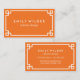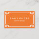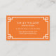 Cartão de visita de chave grega branca e laranja moderna. A na moda laranja e cartão de visita branca apresenta uma fronteira chave grega e um texto moderno. Verifique a loja de Designs Midwest Marca para obter mais opções de cores e produtos correspondentes.