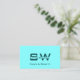 Cartão De Visita Chic Plain Light Dark Teal com Monograma e Foto