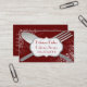 Cartão de visita vermelho escuro à moda, com gráficos de uma grandes forquilha e colher de prata do tom, e flourishes brancos elegantes, nos cantos. Uma chapa branca e de prata decorativa do texto do tom, sobre a pratas, tem o texto vermelho feito sob encomenda. A parte traseira do cartão é feita em uma obscuridade - vermelho, com o texto branco feito sob encomenda pronto para personalizar. À moda esteja para fora o cartão que sae de uma grande impressão durável para sua restauração ou todo o negócio de serviço de alimentação.