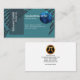 Características de design um design abstrato de números de fluxo ao redor do mundo em um fundo azul ciano. Para a esquerda em uma coluna suspenso, você encontra seus nome da empresa e tagline. No local do globo, senta seus nome e posição. Abaixo destes são os detalhes do contato.