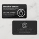 Uma cinza e um cobrir preto curvo são acentuados por um logotipo de tomada de energia prateada que você pode usar. No canto superior esquerdo, está o nome comercial "Serviço elétrico" e seus detalhes de contato. Logo abaixo, está seu nome prestigiado e uma legenda de slogan que você pode mudar. No verso, em uma cobrir de cinza, o logotipo da tomada prateada está no topo, seguido dos detalhes de contato e de uma opção de legenda de slogan. Uma placa de excelente para os eletricistas usarem. #eletricicio #Electrical #elicalservices #elicalcontratante #eletroicalengenheiro #eleterreparo #elédito #elicbulb #eletricpower #elicalwalling #plug #zazzlemade