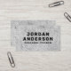 cartões de visitas modernos, masculinos, escuros com seu nome e título em letras grandes e ousadas em uma cinza, textura de concreto rugoso na frente. Campos de modelo personalizáveis para informações de nome, título e contato no verso. A cor da fonte e da fonte pode ser alterada com a ferramenta design.