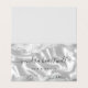 Esta elegante cartão de visita de dobradura moderna apresenta uma imagem de seda branca, enquadrada no topo e no fundo por cinzas e bordas brancas de aquarelas aparadas com brilho cinza-prateado brilhante. Personalize-o com seu nome em um script de escrita manual fora de preto e suas informações comerciais em fontes sans serif. A dentro e as costas são uma sombra coordenadora de cinzas sólidas pálidas. Ideal para cabeleireiros, maquiadores, esteticistas, cosmetólogos e outros profissionais da indústria da beleza.