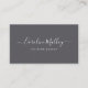 Design de cartão de visita simples e elegante apresenta seu nome ou nome comercial em uma tipografia moderna, escrita branca, escrita à mão, em uma cinza rica. Adicione uma linha adicional de texto abaixo em caracteres limpos e modernos de bloqueio para sua ocupação ou título. Personalize o lado inverso com seus detalhes de contato. Uma escolha química e profissional em preto clássico e branco para qualquer ocupação.
