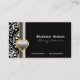 Damasco branco preto com cinza prateada gradiente e cartões de visitas de captura cardíaca, com banda elegante e na moda de cor damasco floral preto-e-branco ( B&W ), uma banda de cinza prateada com efeito metálico, um coração com contorno ouro/ouro e uma fonte tipo vintage. Clássico, porém moderno e moderno ao mesmo tempo. Um design moderno e sofisticado que também pode ser usado por designers de moda, designers/interiores de interiores, estilistas, salões de beleza spa, planejadores de eventos, proprietários de butique e muito mais. Uso pessoal ou profissional.