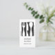 Promova seus serviços de restauração, padaria, restauração ou chef pessoal com esses cartões de visitas elegantes em cinzas clássicas e brancos. Apresentando uma silhueta de faca, garfo e uma colher de branco sobre um quadrado de cinzas em apuros, com duas linhas de texto personalizado por baixo em caracteres clássicos. Adicione seus detalhes e contato no verso em branco sobre um fundo de cinza em contraste.