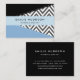 Cartões de visitas elegantes, na moda e sofisticados com padrão zigzag (chevron) em cinzas e cor branca com manchas azuis e pretas de cor. Design moderno e moderno, perfeito para amantes de ziguezague.