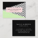 Cartões de visitas elegantes, na moda e sofisticados com padrão zigzag (chevron) em cinzas e cor branca com manchas de cor preta e menta. Design moderno e moderno, perfeito para amantes de ziguezague.