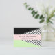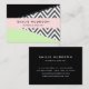 Cartões de visitas elegantes, na moda e sofisticados com padrão zigzag (chevron) em cinzas e cor branca com manchas de cor preta e menta. Design moderno e moderno, perfeito para amantes de ziguezague.