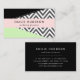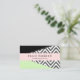 Cartões de visitas elegantes, na moda e sofisticados com padrão zigzag (chevron) em cinzas e cor branca com manchas de cor preta e menta. Design moderno e moderno, perfeito para amantes de ziguezague.
