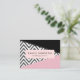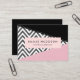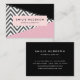 Cartões de visitas elegantes, na moda e sofisticados com padrão zigzag (chevron) em cinzas e cor branca com manchas cor rosa e pretas. Design moderno e moderno, perfeito para amantes de ziguezague.