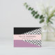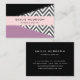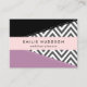 Cartões de visitas elegantes, na moda e sofisticados com padrão zigzag (chevron) em cinzas e cor branca com manchas roxas e pretas de cor. Design moderno e moderno, perfeito para amantes de ziguezague.