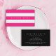 Cartão de visita apresenta listras cor-de-rosa e brancas na parte frontal e tem um lado traseiro preto colorido. Este cartão de visita de chic é ideal para profissões como designer de interiores, planejador de eventos, estilista, maquiador etc. Personalize-o substituindo o texto do marcador de posição. Para obter mais opções, como alterar a fonte e seu tamanho/cor ou o espaçamento entre letras, clique no botão "Personalizar". *Observe que a Marca d'água do Zazzle que aparece na visualização de zoom NÃO aparecerá no produto impresso final. © Rosewood e Citrus