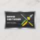 cartão de visita profissional com sotaques de aço escovados com chave de fenda e alicate. Adicione seu nome e detalhes de contato para criar uma primeira impressão duradoura.