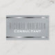 Cinzas elegantes, monocromáticas, cartões de visitas escovados do olhar do metal para profissionais. Apropriado para muitas profissões tais como consultantes, arquitetos, mediadores imobiliários, advogados, contadores, os gerentes executivos, os escritores, a parte dianteira etc. tem o fundo escovado moderno do teste padrão do olhar da textura do metal em cinzas monocromáticas com título conhecido e profissional centrado, personalizado em umas cinzas e em uma rotulação mais escuras do branco. Limitado em bordas com as fitas metálicas finas, de prata do olhar. A parte traseira tem a harmonização do efeito do cromo e de beiras cinzentos, escovados do olhar do metal da prata. O modelo do texto contem os detalhes do contacto comercial, incluindo contas sociais dos meios, tais como o linkedin e o Facebook. Preencha o modelo com sua própria informação do negócio. Sinta livre mudar ou adicionar à informação do texto. Nota: Todas as imagens são imprimidas. Metal nao real. Outros cartões de visitas profissionais customizáveis, modernos estão disponíveis em nossa loja de Zazzle.com/angela65.