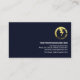 No verso, em um cobrir azul escuro, no topo está o logotipo dourado seguido do seu nome prestigioso, dos detalhes de contato e de uma opção de slogan.