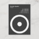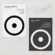 Um modelo de cartão de negócios com um círculo vago ou símbolo 'O' na frente. Nome da empresa, tipo de negócio e endereço na frente com nome, cargo, telefone, web e endereços de e-mail no verso, com um layout semelhante em um fundo de cinza com uma repetição do símbolo frontal em branco. Este cartão também pode ser mais personalizado.