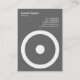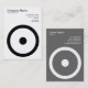 Um modelo de cartão de negócios com um círculo vago ou símbolo 'O' na frente. Nome da empresa, tipo de negócio e endereço na frente com nome, cargo, telefone, web e endereços de e-mail no verso, com um layout semelhante em um fundo de cinza com uma repetição do símbolo frontal em branco. Este cartão também pode ser mais personalizado.