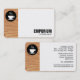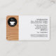 Um modelo de cartão de negócios criado à indústria da restauração em mente. Uma margem de cor de 1 à esquerda com um círculo preto sólido com um símbolo/logotipo da xícara de café (que também pode ser substituído pelo seu próprio logotipo) Nome da empresa e tipo de negócio organizado na parte inferior direita. O verso da placa tem o mesmo esquema, juntamente com uma repetição do logótipo. As horas de abertura e outros contatos estão alinhados à direita. N.B Esta modelo não tem um nome de contato e um cargo, pois é projetada para funcionar mais como um minicardia para uma preferencialmente de café ou restaurante do que para um representante individual ou de uma empresa. Esse modelo simples, mas versátil, está pronto para ser personalizado com seus detalhes ou pode ser personalizado adicionalmente.