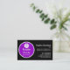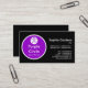 Um modelo comercial/cartão de visita com um painel circular roxo de borda branca destinado aos detalhes e ao logotipo da empresa. O logotipo usado aqui é de Zodiac BT que é uma das fontes de imagem de Zazzle. Pode, evidentemente, ser alterado, substituído ou apagado e o texto pode ser redimensionado e/ou realinhado premindo o botão personalizar. A parte traseira da placa foi deixada em vazio usando a mesma cor de fundo da frente, que pode ser personalizada ainda mais se desejar.