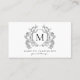 Cartão De Visita Clássico Preto Branco Floral Crest Monograma Códig