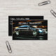 Cartão de visita de táxi de serviço de carro clássico ou de motorista Uber em um simples layout duplo com gráfico de um carro de escala superior e texto editável.