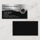 Cartão de visita de negócios de procurador projetado com elementos de design de tom de cinza prateada simulados, incluindo uma escala de emblema de justiça. Concebidos como cartão de visita de advogado para uma prática de direito ou serviços jurídicos.