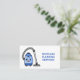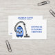 Um cartão de visita bonito para empresas de limpeza, limpadores profissionais, empregadas domésticas e empregadas domésticas. A placa apresenta um aspirador azul no estilo kawaii bonito. Um doce design que deixa uma sensação quente. Edite as modelos de texto para seu próprio cartão de visita personalizado.