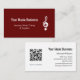Cartão de visita de musical vermelho com símbolo de clave branco. Com a inscrição personalizável, você adiciona suas próprias informações. Você também adiciona seu site para permitir conexão com um código QR. Excelente para promover suas aulas de música ou realizar negócios.