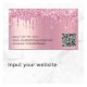 Faça uma boa impressão com este cartão de visita chic com gotas de brilho sujo rosa e seu nome em um script de tendência contra um fundo de folha falsa rosa. No verso, introduza o endereço de URL do Web site para criar um código qr para os clientes pesquisarem o seu portfólio, serviços, preços e outras informações. Perfeito para salões de beleza, maquiadores, cabeleireiros e estéticos.