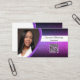 Cartão De Visita Código QR de Foto Profissional de Folha Roxa Glitt