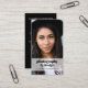 Cartão de visita moderno com a sua foto, sobreposta pela sua profissão e com o seu nome em letras negrito e modesto. No verso, adicione seus detalhes de contato em texto branco simples em um fundo preto e insira um endereço URL para criar um código QR digital digitalizável vinculado ao seu site, perfil de mídia social ou outra plataforma que mostre seu trabalho, permitindo que clientes e clientes explorem sua expertise.