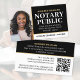 Faça uma impressão profissional com esses cartões de visitas na moda. Este modelo editável é personalizado com sua foto de ID, seu nome, credenciais, informações de contato e um código de QR digitalizável. Personalize o texto para se adequar à sua empresa. Perfeito para um Notário Público, Agente de Assinatura de Empréstimo, Notário Móvel, Agente de Entrega de Confiança Notária Certificada (CNTDA) ou outra profissão jurídica. Cores impressas: preto, branco e ouro. Compre a coleção on-line para obter ideias e suprimentos de produtos mais populares, projetados para notários!