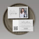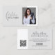 Cartão de visita de fotografia moderna, simples e mínima. Design apresenta um monograma simples com seu nome e título, foto em uma cinza e fundo branco. Personalize ainda mais com o código qr, os detalhes de contato e as mídias sociais no verso.