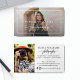 Fotografia moderna e moderna com fotografia de moda 2 cartão de visita de fotografia. Design apresenta a foto de sangria de cheio na frente, seu nome ou nome de estúdio e script de tipografia em letras brancas de tendência. Personalize ainda mais com outra foto no verso, código qr, seu nome, detalhes de contato e mídia social no verso.