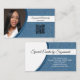 Uma brilho azul esmaecido define o fundo deste design de cartão de visita com um espaço reservado para fotos à esquerda com o nome do modelo, o título e o código QR à direita. O verso inclui um design coordenado e cores com campos de texto para o nome e os detalhes da empresa. Substitua a foto do marcador de posição pela sua fotografia de formato vertical e pelo seu código QR na frente. Preencha os campos modelo, remova o texto ou clique em personalizar para selecionar um estilo de fonte, tamanho e cor desejados. Use seu código QR para enviar clientes para seu site, página de revisões, fotos ou outra página especial. A foto do marcador de posição é cortesia em pixabay.com.