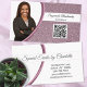 Uma brilho púrpura de ameixa invertida define o plano de fundo deste design de cartão de visita com um marcador de fotos à esquerda com o nome modelo à direita e o Código QR à direita. O verso inclui um design coordenado e cores com campos de texto para o nome e os detalhes da empresa. Substitua a foto do marcador de posição pela sua fotografia de formato vertical e pelo seu código QR na frente. Preencha os campos modelo ou clique em personalizar para selecionar um estilo de fonte, tamanho e cor desejados. Use seu código QR para enviar clientes ao seu site, análises, fotos ou outra página especial. A foto do marcador de posição é cortesia em pixabay.com.