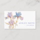 Este design apresenta íris em aquarela em tons de lilás e azul pervinca. Toques sutis de dourado adicionam um elemento brilhante e mágico. Personalize com seu nome e informações comerciais.
