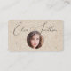 Este design simples e profissional apresenta uma tipografia elegante de script, uma fotografia redonda (substitua-a por uma imagem quadrada para melhores resultados), muitos ícones de mídia social e um código QR para personalizar com seu site, blog ou qualquer link. Os ícones das mídias sociais podem ser movidos ou excluídos usando a ferramenta design.