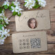 Este design simples e profissional apresenta uma tipografia elegante de script, uma fotografia redonda (substitua-a por uma imagem quadrada para melhores resultados), muitos ícones de mídia social e um código QR para personalizar com seu site, blog ou qualquer link. Os ícones das mídias sociais podem ser movidos ou excluídos usando a ferramenta design.
