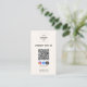 Cartão de visita apresenta código qr e ícones de mídia social.