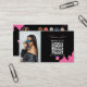 Um cartão de visita preto e rosa maravilhosamente projetado que inclui sua foto de cheio e suas próprias fotos em grade, assim como seu nome, título, código QR e identificador de mídia social. A foto do cobrir é sobreposta atomicamente com uma camada opaca preta para visibilidade do texto. Perfeito para influentes nas mídias sociais. Simplesmente personalize e torne-o seu!