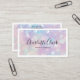 Trendy e moderno, este cartão de visita holográfico apresenta seu nome ou nome comercial em tipografia de script definida contra um fundo brilhante na moda iridescente. Esse cartão de visita é perfeito para qualquer profissional da indústria da beleza e além (maquiador, cabeleireiro, especialista em pregos, dono de salão de beleza, estético, esteticista e muito mais). Você pode personalizar a frente com seu nome e título (ou endereço/local do site) e adicionar suas informações de contato (incluindo endereço do site e contas de mídia social), código QR digitalizável no verso.