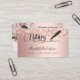 Um cartão de visita elegante e glamouroso em um fundo metálico falso de rosa dourado, decorado com poeira falso brilhante na frente e uma caneta de assinatura preta. Escrito elegante com letra manual. Personalize e adicione seu nome, texto, foto de perfil, informações de contato e seu próprio código QR ao seu endereço de site.