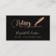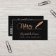 Um cartão de visita elegante sobre fundo preto e uma caneta de assinatura rosa dourada. Escrito elegante com letra manual. Personalize e adicione seu nome, título, informações de contato e seu próprio código QR ao seu endereço de site.