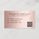 Um cartão de visita elegante e glamouroso sobre um fundo rosa de ouro esmagado e uma caneta de assinatura preta. Personalize e adicione seu nome, título, informações de contato e seu próprio código QR ao seu endereço de site.