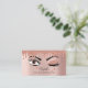 Um design de cãozinho giro mostrando uma bela ilustração de pestanas longas com brilho rosado pincelado pingando para baixo e rosa metálico sujo de fundo cor-de-rosa. O piscar de olhos dá à design um toque de fraude! Uma maneira simples e profissional de apresentar seu negócio de extensões de pestanas, maquiador, cabeleireiro, salão de beleza ou moda. Personalize este design com os seus detalhes para criar o seu cartão de visita único. Ícones das mídias sociais incluídos na design deste cartão de visita para você usar.