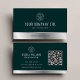 Esta cartão de visita é uma escolha sofisticada e profissional para quem procura dar uma impressão duradoura. O esquema de cores verde e prateada é eterno e elegante, e o código QR permite que você compartilhe facilmente suas informações de contato e seu site com clientes ou clientes potenciais.