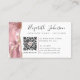 Cartão De Visita Código QR do mármore de agitação Dourada rosa com