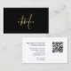 Elegante Modern Black Dourado Script Monograma Cartão de visita de Código QR Monograma.
